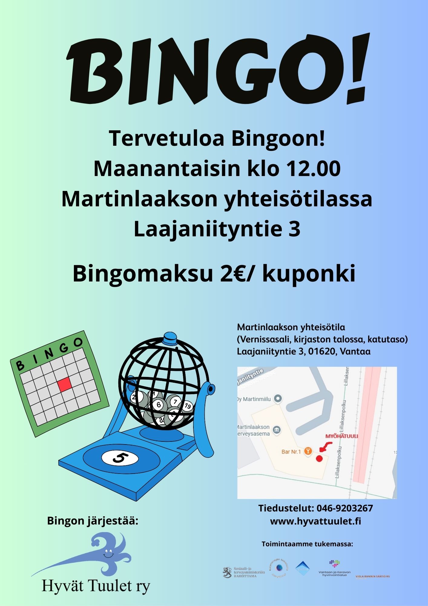 Tervetuloa viikoittaiseen bingoon ensi maanantaista alkaen Martinlaakson yhteisötilaan!