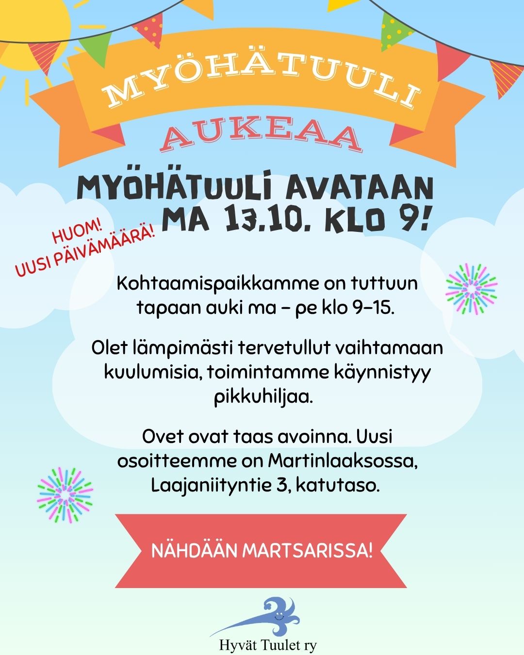 Ma 13.10 Myöhätuuli aukeaa Martinlaaksossa, osoitteessa Laajaniityntie 3