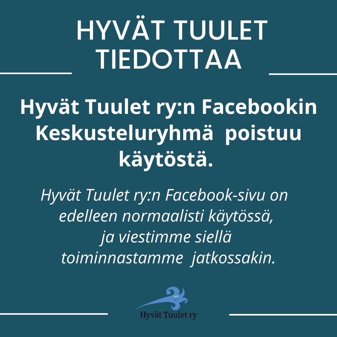 Hyvät Tuulet ry:n keskusteluryhmä poistuu Facebookista