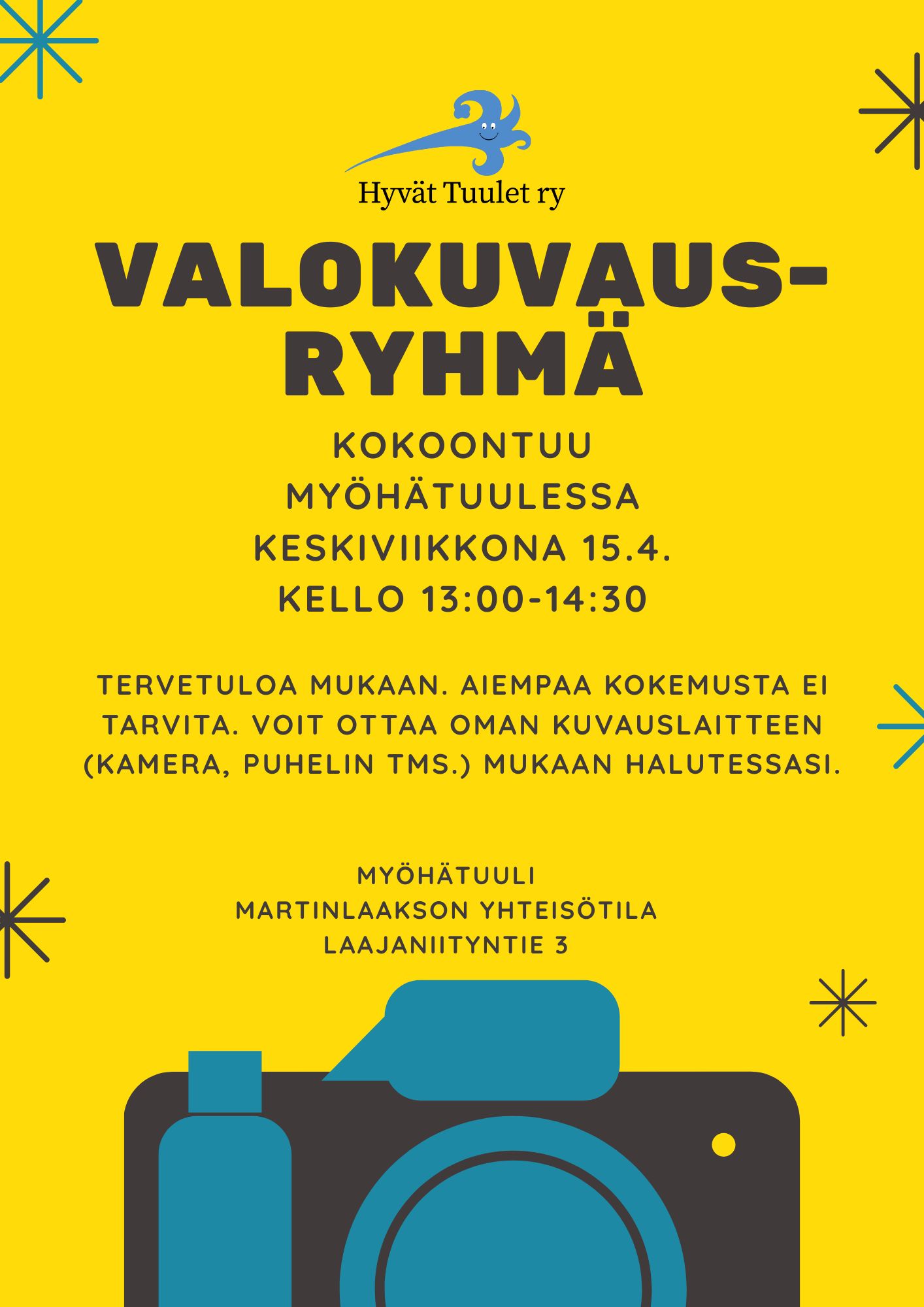 Hyvien Tuulien valokuvausryhmä kokoontuu ke 15.4. klo 13-14.30
