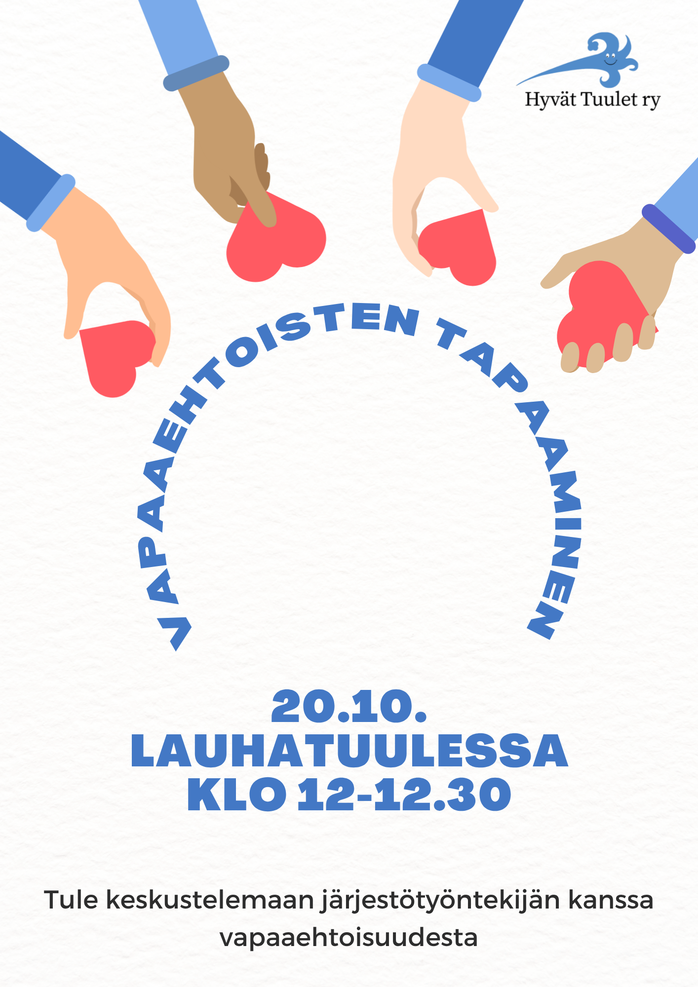 Tule keskustelemaan Lauhatuuleen toisten vapaaehtoisten ja järjestötyöntekijän kanssa vapaaehtoisuudesta ma 20.10. klo 12-12.30.
