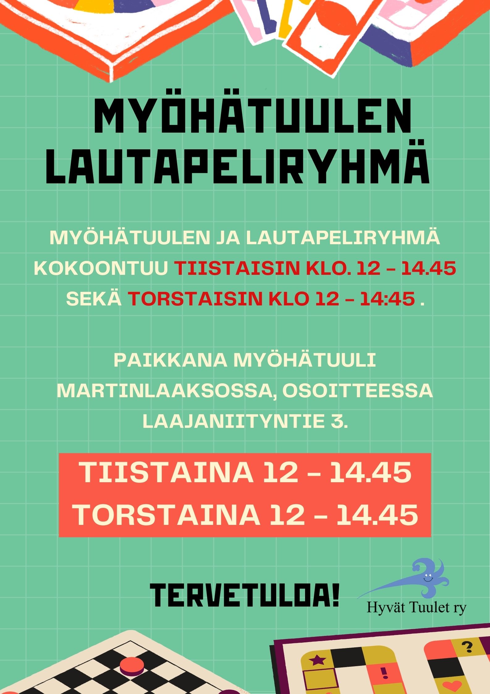 Hyvien Tuulien lautapeliryhmä kokoontuu